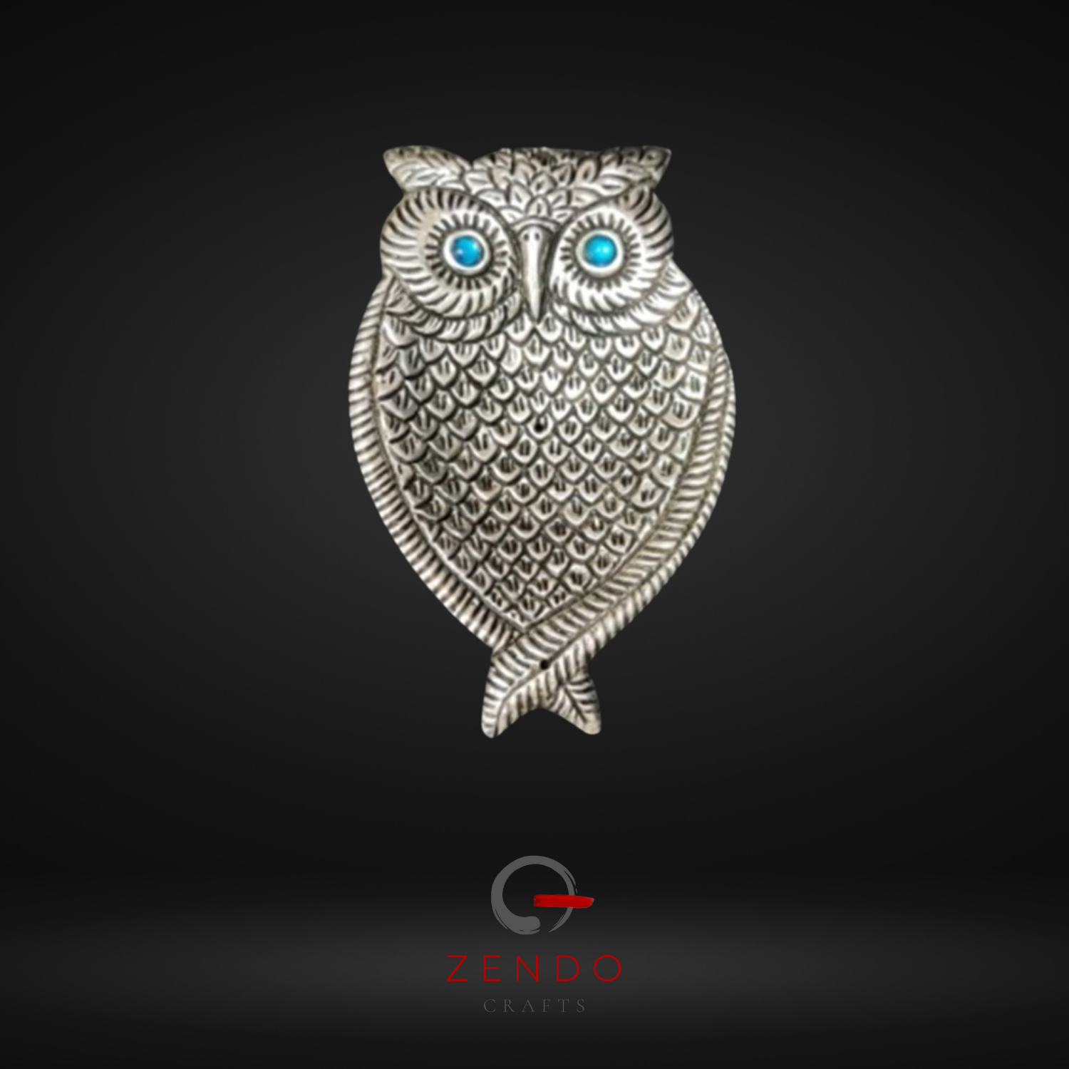 This White Metal owl Incense Holder is the perfect way to enjoy your favorite incense while meditating or relaxing. The owl with this bright blue stone eyes will add a touch of class to any room.
